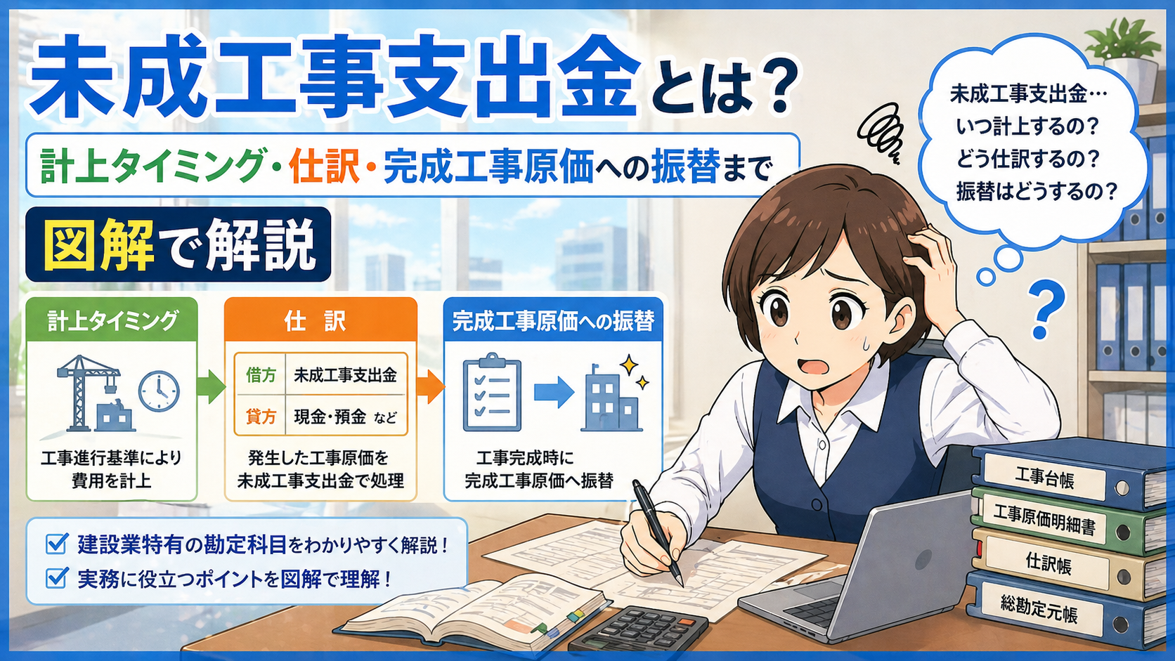 で詳しく解説しています。建設業特有の勘定科目をセットで押さえることで、日々の実務への自信につながっていきます。